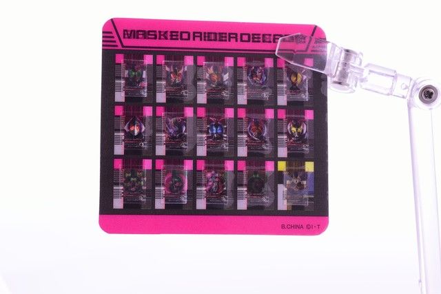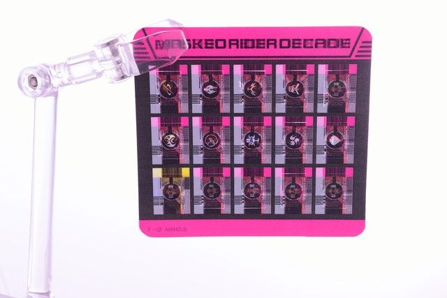プラ製のライダーカード。透明フィルムの台紙から剥がして使用します。