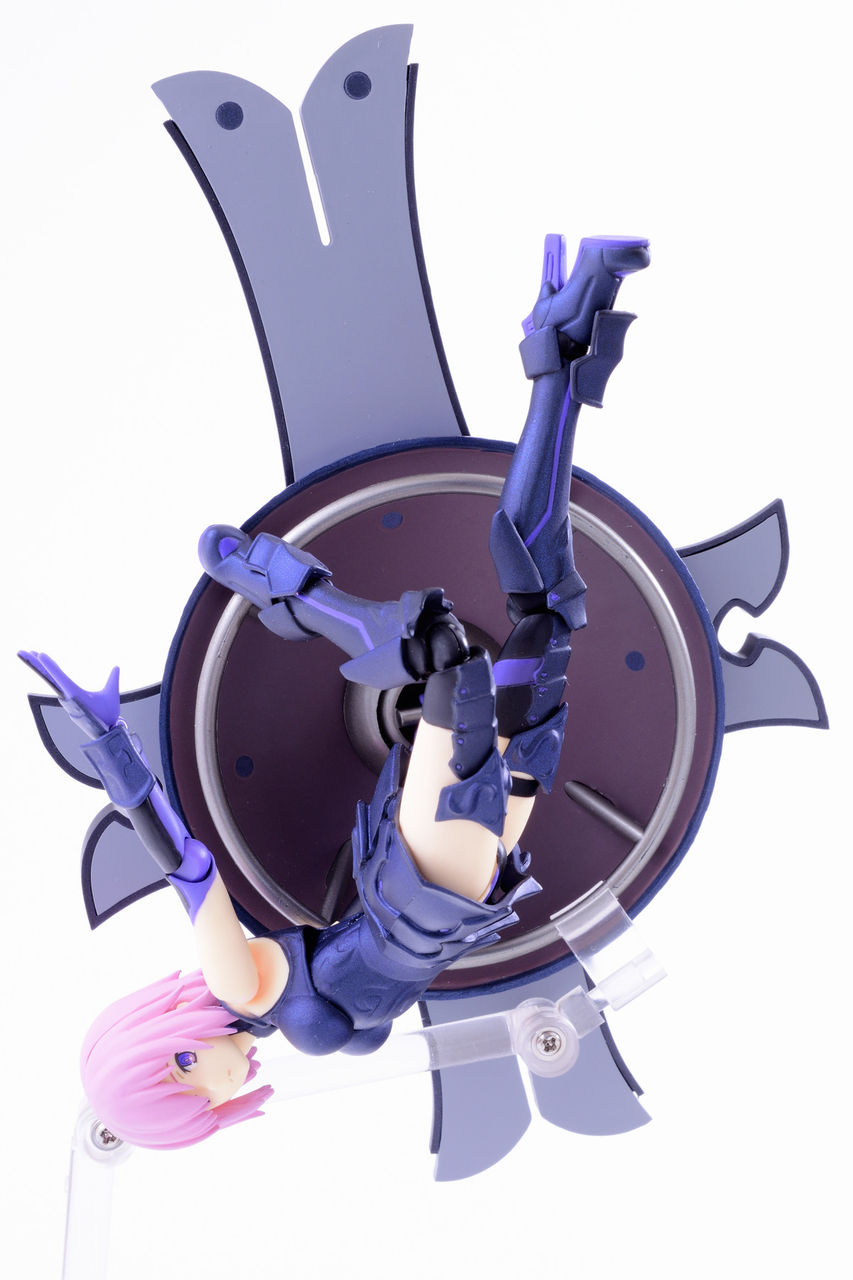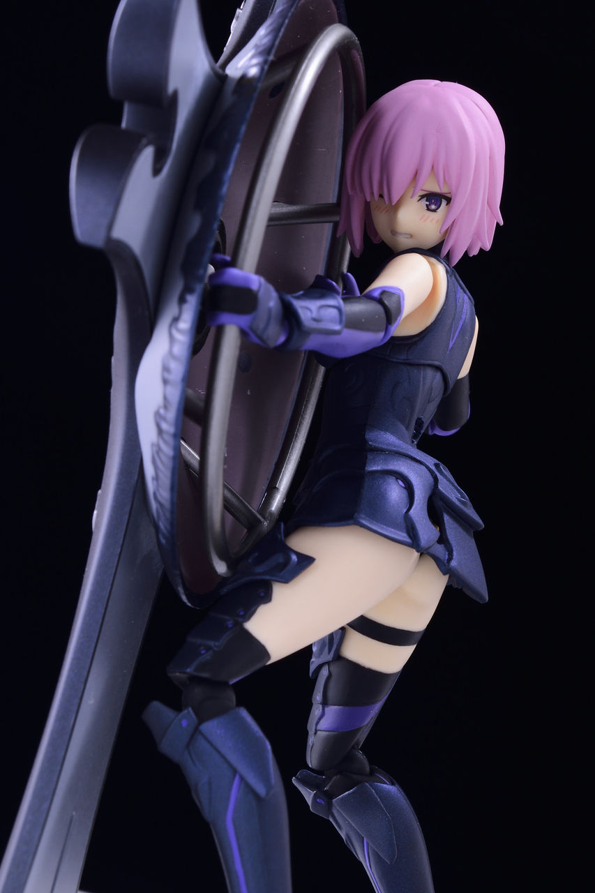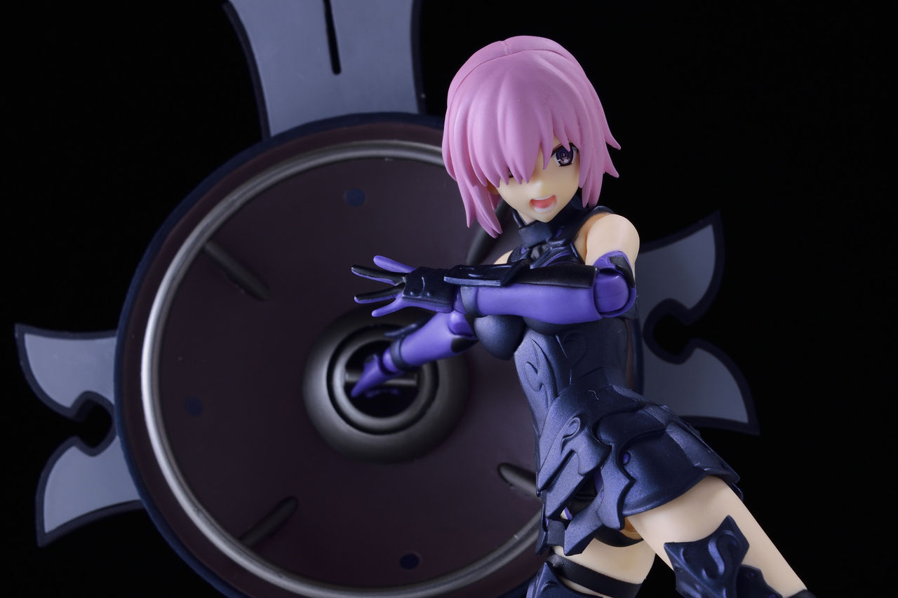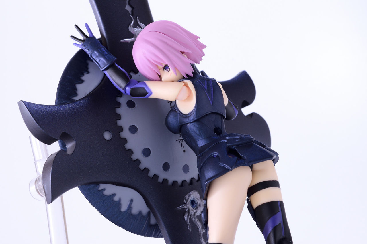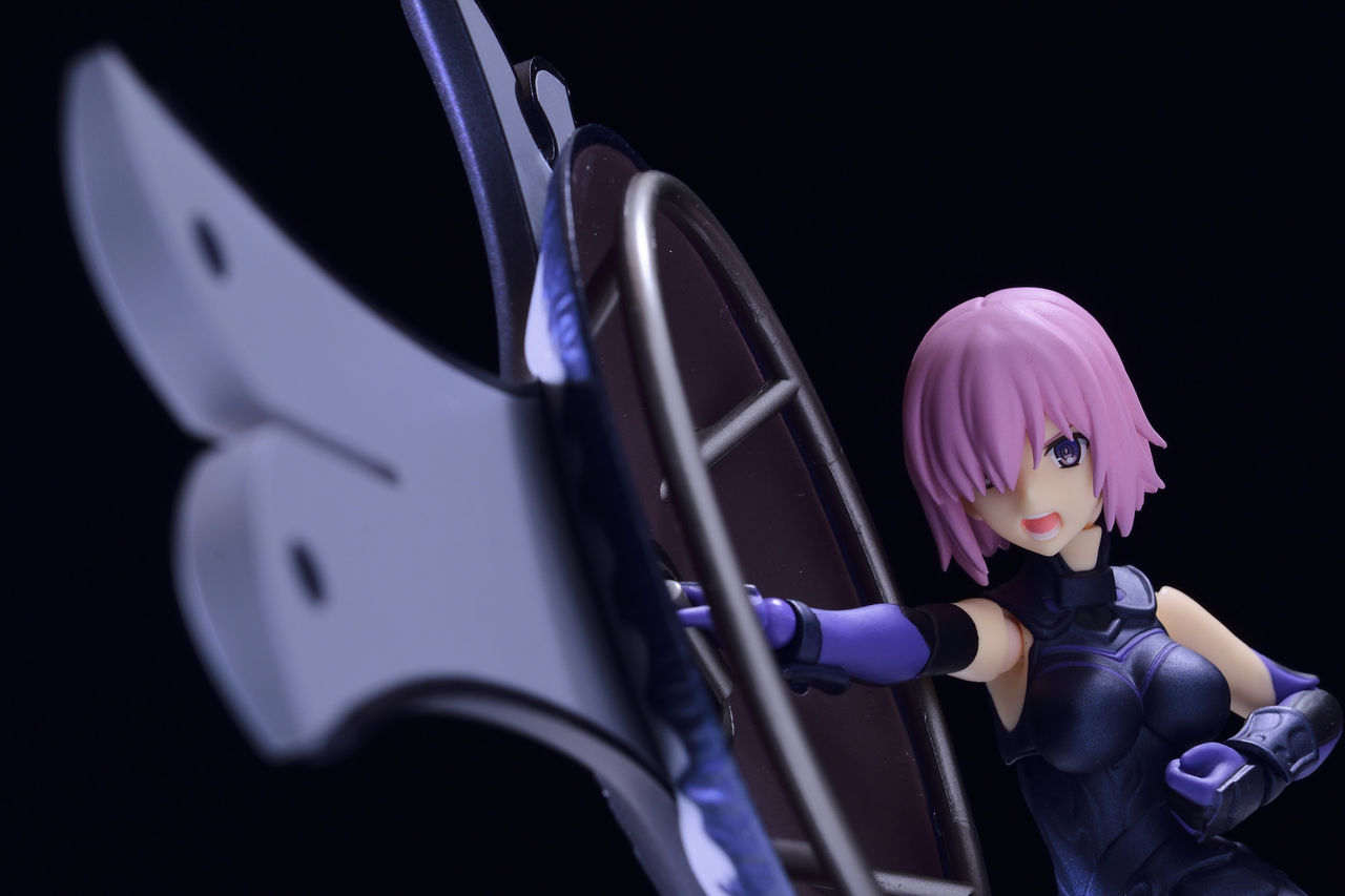 マシュをデミ・サーヴァントたらしめる十字架型のラウンドシールドも細部まで再現されており、設定同様、躰よりもデカいというスケール感を損ねておらず良い具合。