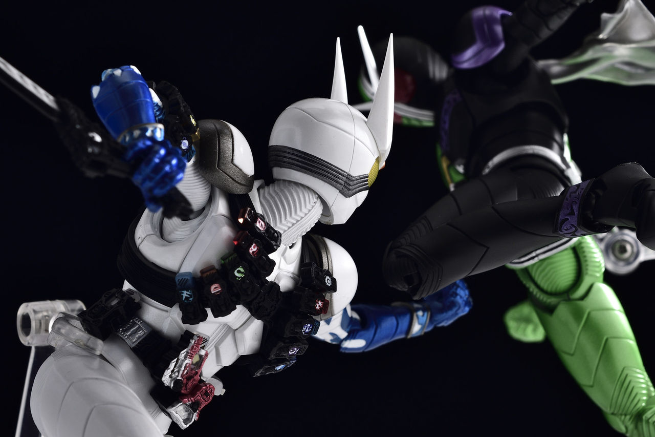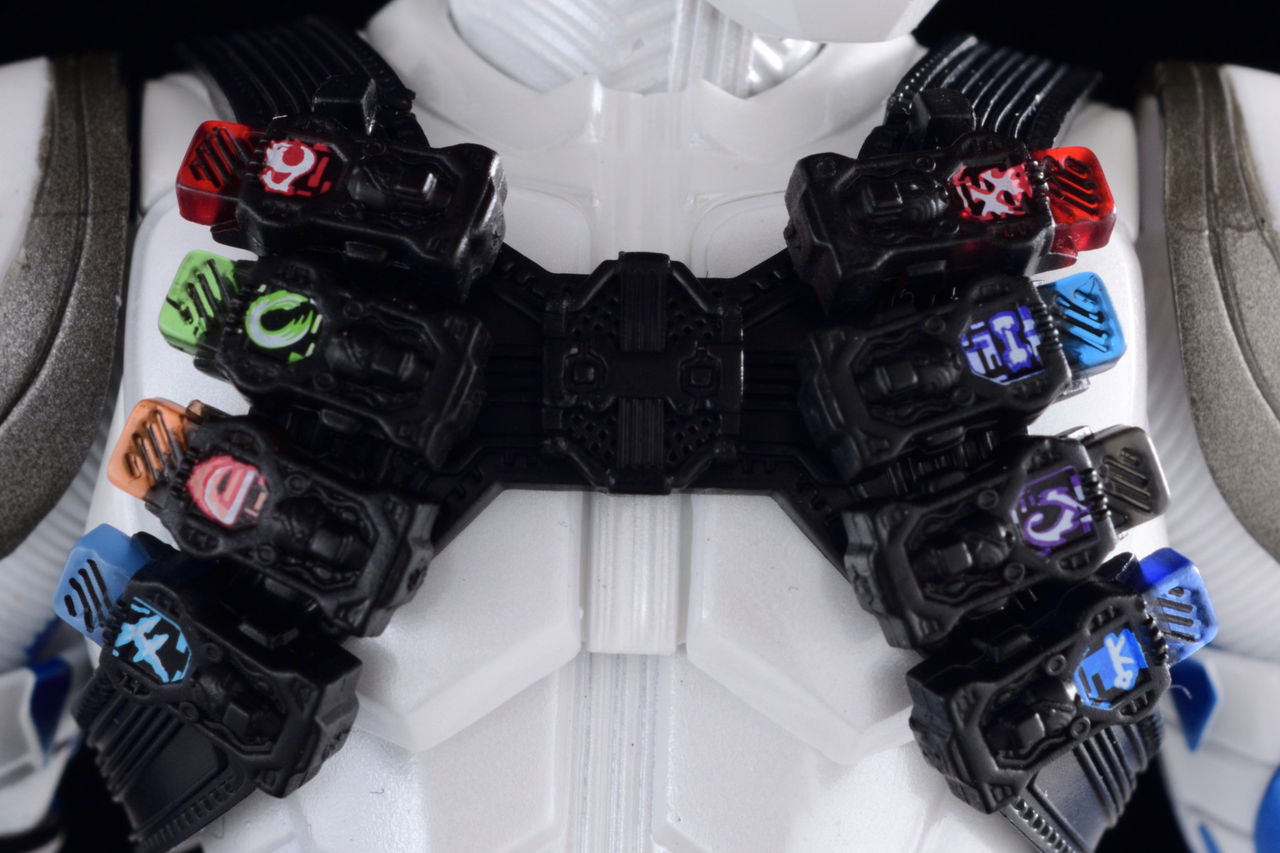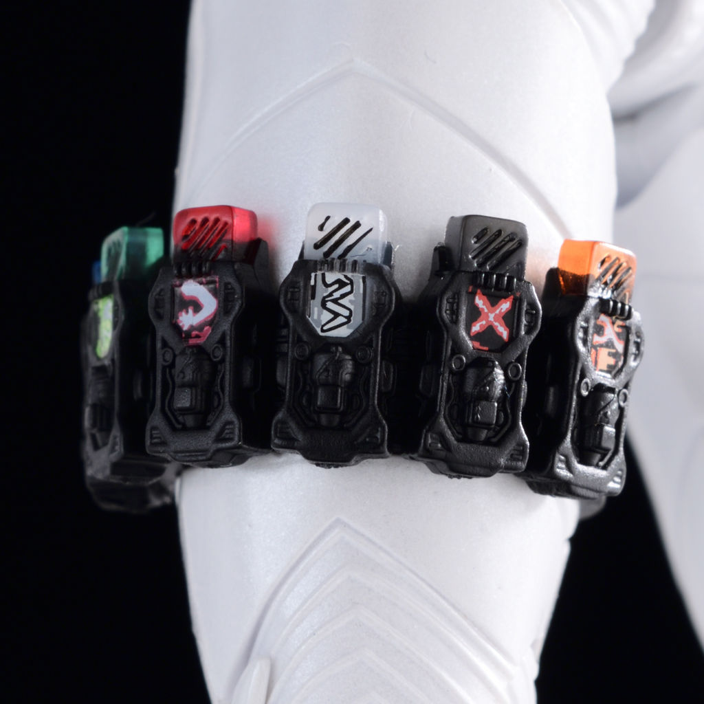 今回、ベルト以外のスロットはガイアメモリ挿入済みのコンバットベルトと差し替えで再現になります。