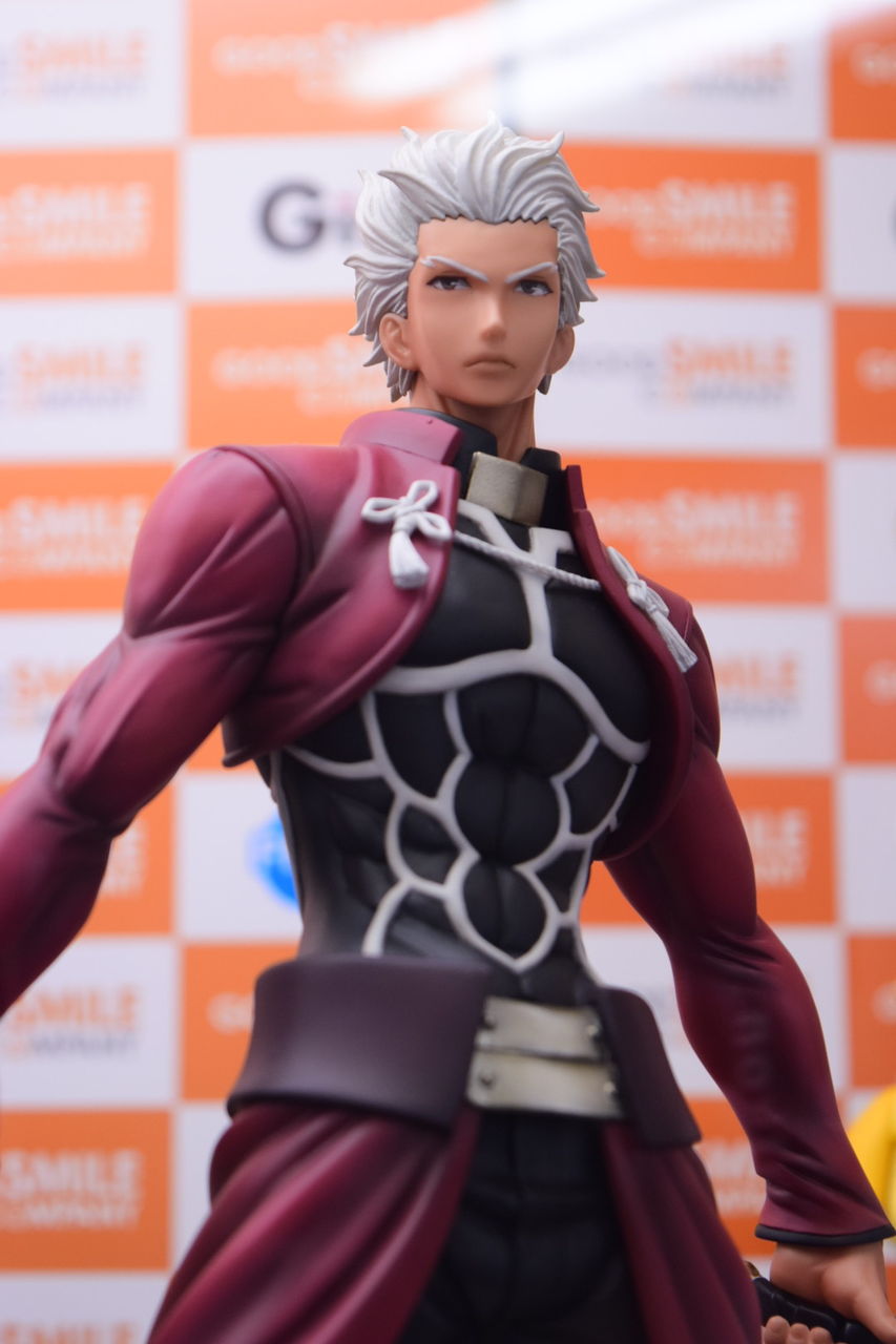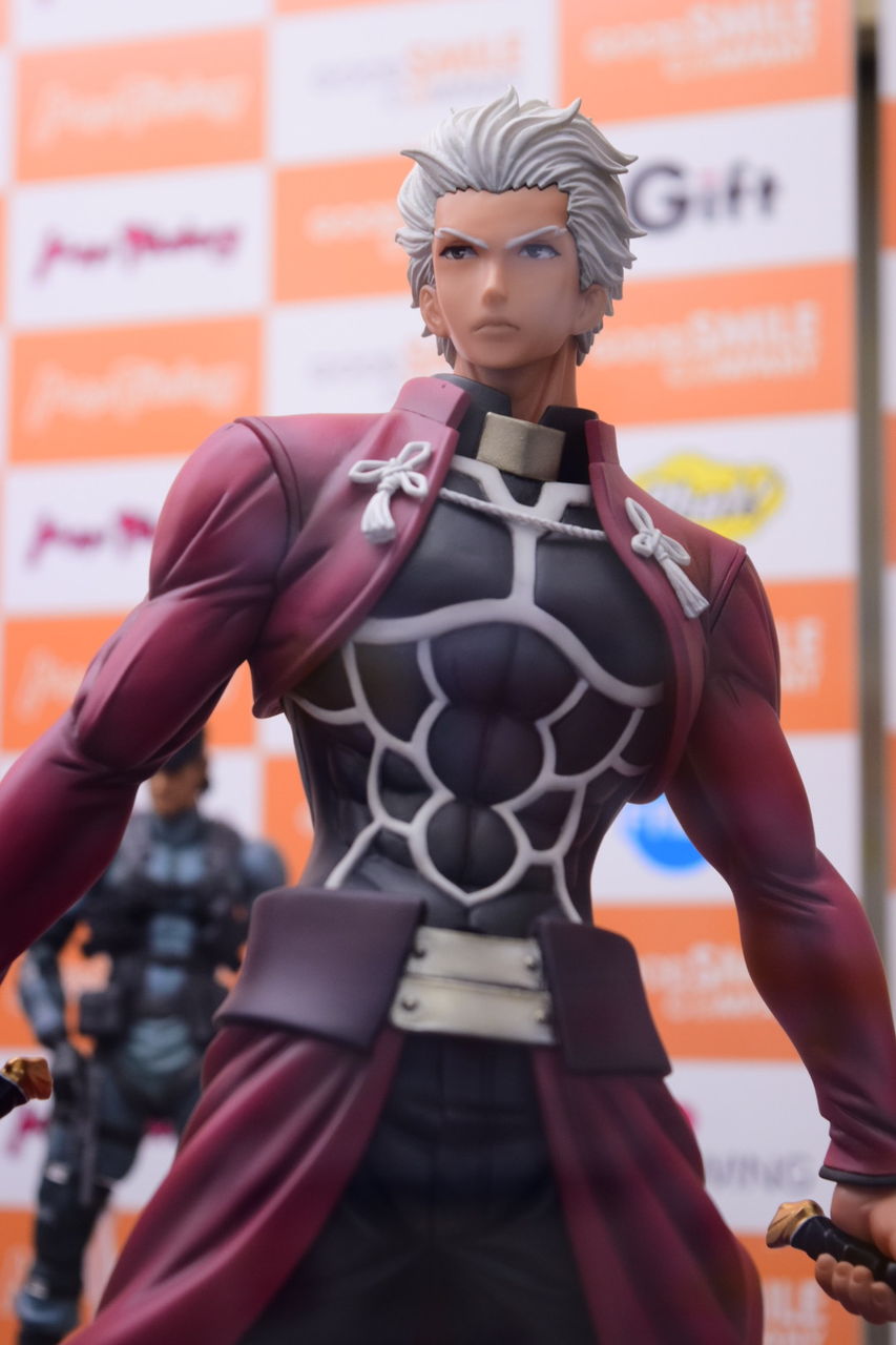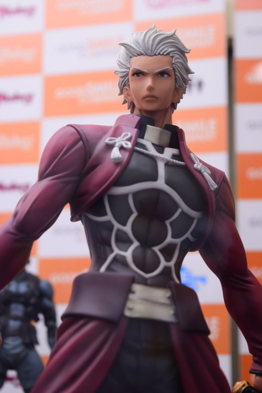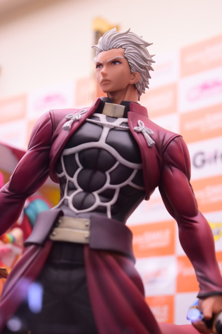 2018年02月08日 アクアマリン アーチャー Route:Unlimited Blade Works サンプル撮影 アクアマリン様より8月発売予定の1/7スケールフィギュア、アーチャーの店頭サンプルを撮影してきました。 以前のWFで公開されてたアクアマリン様の筋骨隆々なアーチャーの彩色サンプルです。原型製作:石山裕記 氏彩色:村川勝心(knead)氏夫婦剣を握った腕は筋肉質で力強く、尚且つスラッとした印象も巧く崩さない、見事な造形ですね。赤原礼装とインナーのスキマがセクシャリティ。精悍なお顔、イケツラです。礼装の結いは固く結ばれた印象を受けます後ろに流した髪の感じが凄い好き…。全体的に引き締まっているのですが、中でも腹部の括れがたまりませんなぁ! 「フィギュア撮影」カテゴリの最新記事