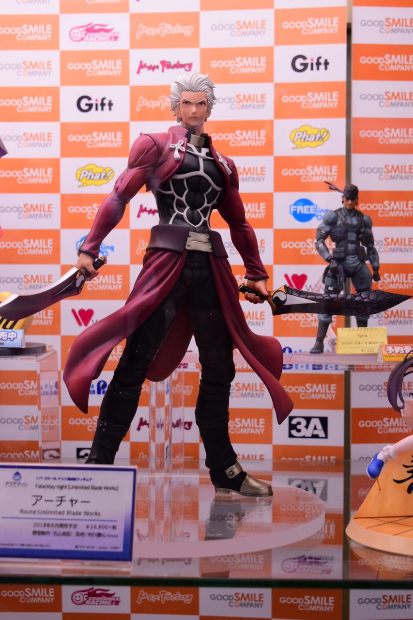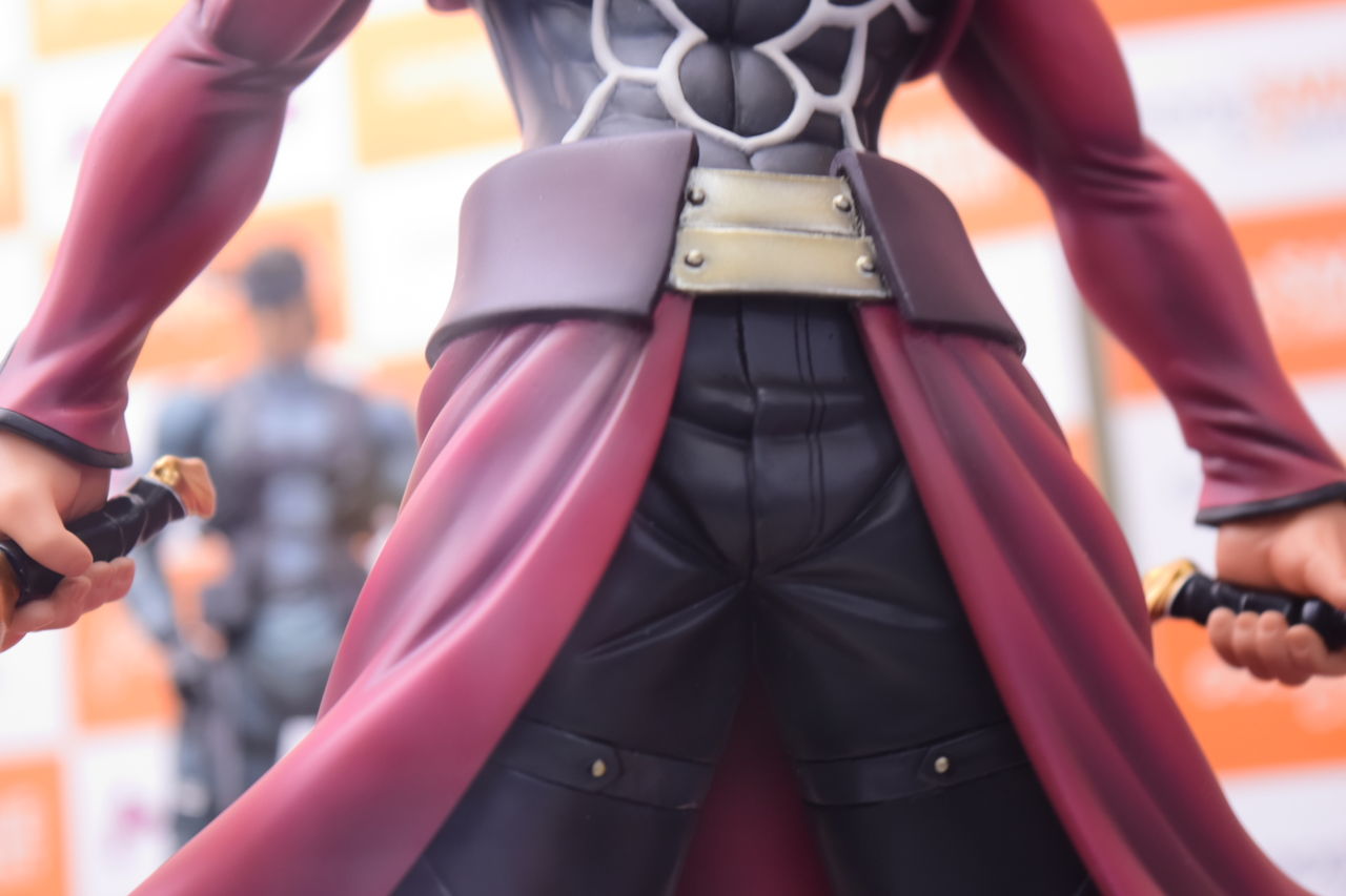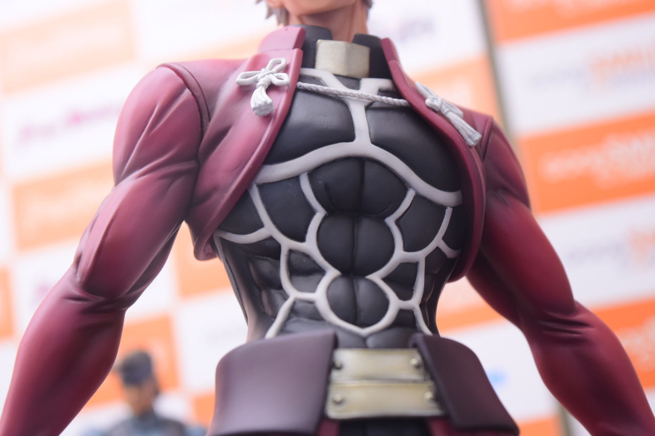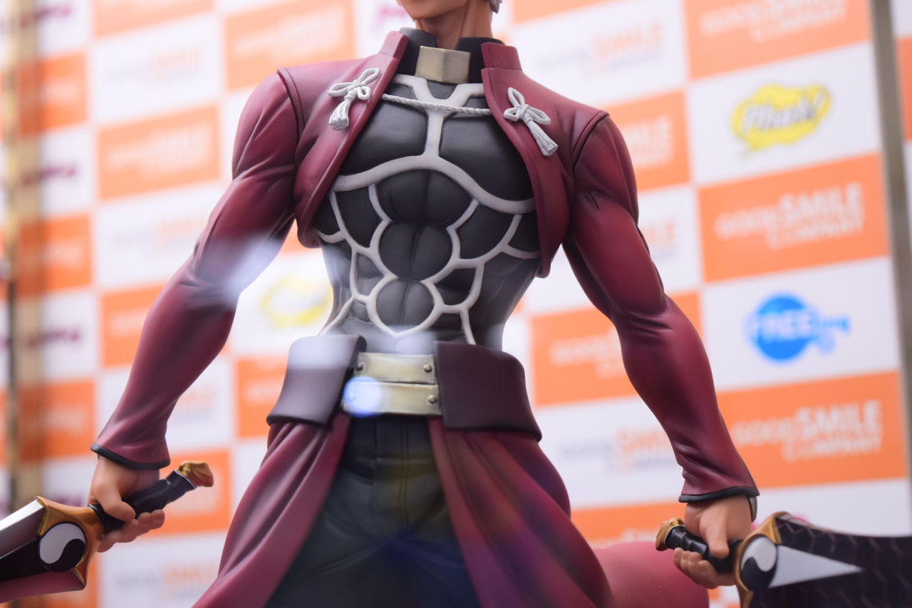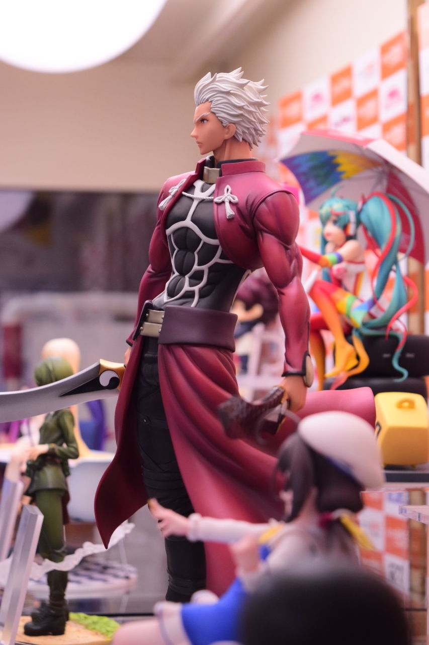 2018年02月08日 アクアマリン アーチャー Route:Unlimited Blade Works サンプル撮影 アクアマリン様より8月発売予定の1/7スケールフィギュア、アーチャーの店頭サンプルを撮影してきました。 以前のWFで公開されてたアクアマリン様の筋骨隆々なアーチャーの彩色サンプルです。原型製作:石山裕記 氏彩色:村川勝心(knead)氏夫婦剣を握った腕は筋肉質で力強く、尚且つスラッとした印象も巧く崩さない、見事な造形ですね。赤原礼装とインナーのスキマがセクシャリティ。精悍なお顔、イケツラです。礼装の結いは固く結ばれた印象を受けます後ろに流した髪の感じが凄い好き…。全体的に引き締まっているのですが、中でも腹部の括れがたまりませんなぁ! 「フィギュア撮影」カテゴリの最新記事