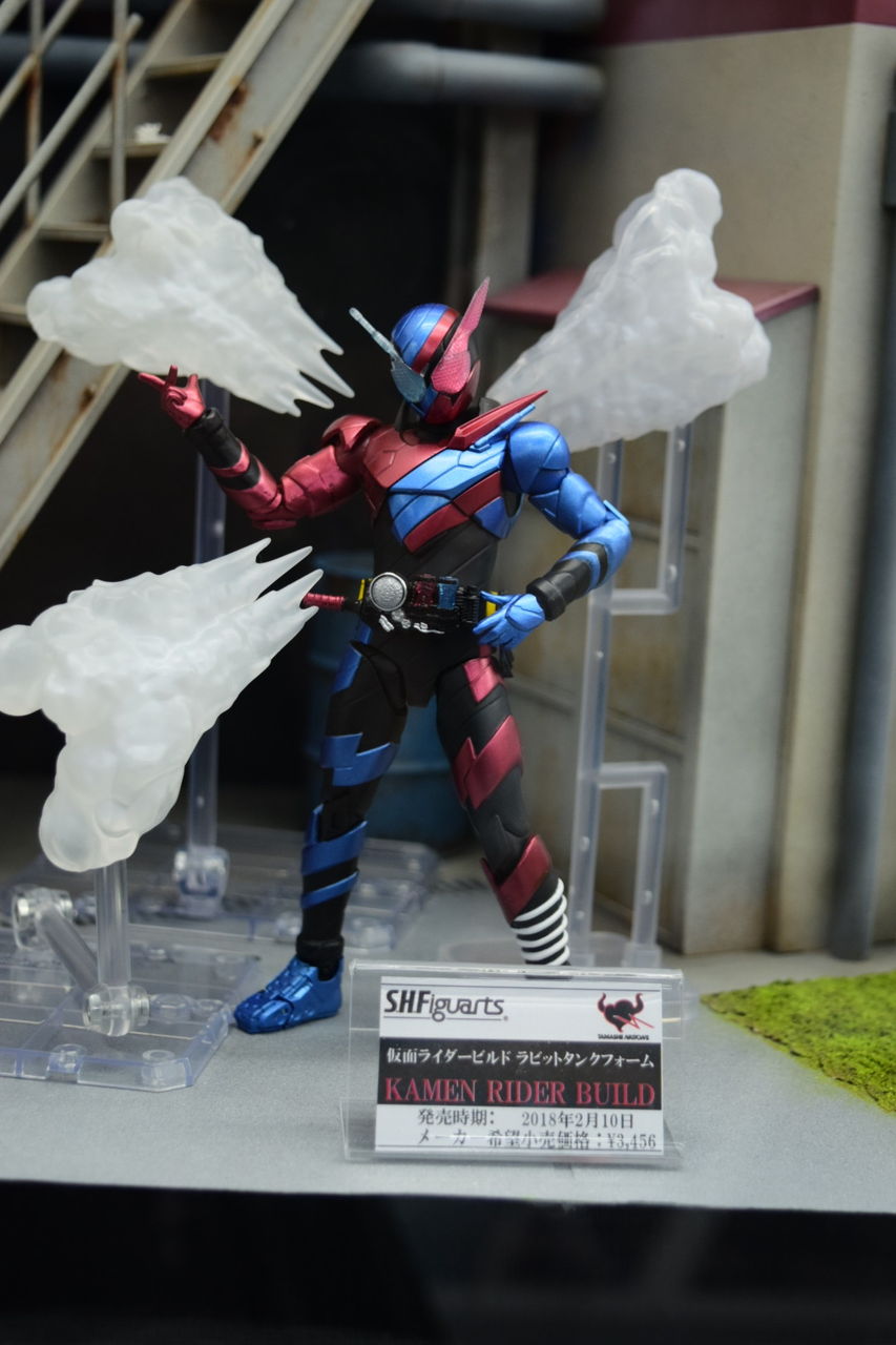 2018年02月08日 S.H.Figuarts 仮面ライダービルド ラビットタンクフォーム 展示サンプル撮影他 今週金曜発売、S.H.Figuarts仮面ライダービルド ラビットタンクフォームの展示サンプルを撮影してきました。 マシンビルダー&パーツセットナイトローグ。クリア越しの眼やらマーキングやら細かいですね。追記:2/9に展示追加されてたので撮影してきました。俺のイチオシは仮面ライダー筋肉バカ…もとい仮面ライダークローズ!コブラ男!惜しい!正解は…ブラッドスターク! 「機材」カテゴリの最新記事
